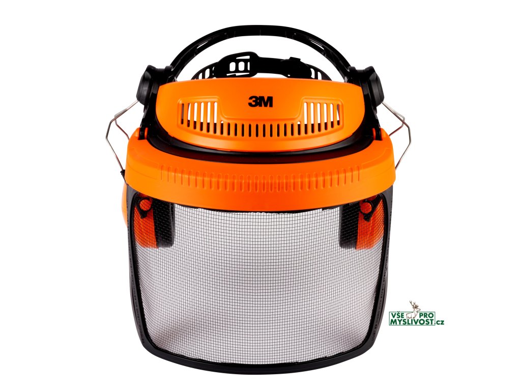 kombinace náhlavního systému 3M G500 s drátěným obličejovým štítem z nerezové oceli 5C a sluchátky OPTIME I; vážená hodnota útlumu SNR 26 dB.