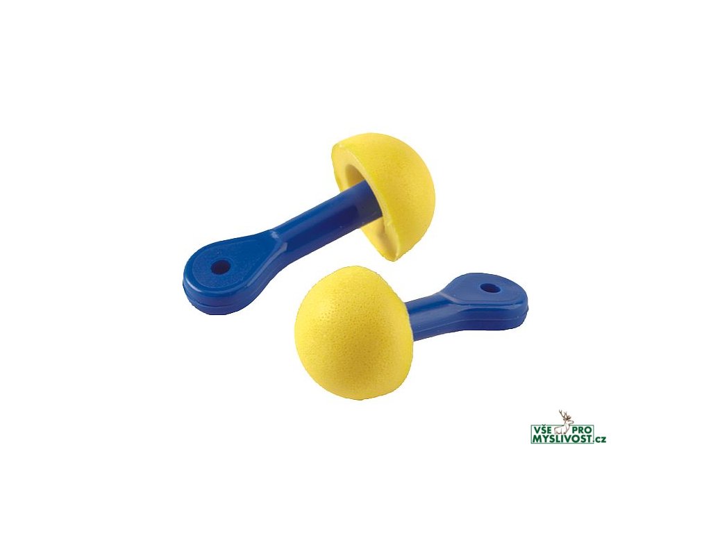 omyvatelné zátkové chrániče sluchu hříbkovitého tvaru, s plastovou rukojetí pro snadné a hygienické zavádění do zvukovodu