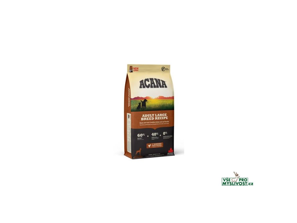 PŘIPRAVOVÁNO V NAŠICH OCEŇOVANÝCH KUCHYNÍCH V KANADĚ. ACANA ADULT LARGE BREED PŘEKYPUJE ČERSTVÝMI MÍSTNÍMI SUROVINAMI VČETNĚ VOLNĚ CHOVANÝCH KUŘAT, VAJEC Z HNÍZDNÍCH CHOVŮ, PLATÝSE LOVENÉHO VOLNĚ V PŘÍRODĚ A NA SLUNCI ZRAJÍCÍHO OVOCE A ZELENINY – VŠECHNY SUROVINY DODÁVAJÍ VÝŽIVU A CHUTNOST A ZAJIŠŤUJÍ TAK VRCHOLOVOU KONDICI PSŮ VELKÝCH PLEMEN. PŘEČTĚTE SI NAŠE SLOŽENÍ A MYSLÍME, ŽE S NÁMI BUDETE SOUHLASIT.