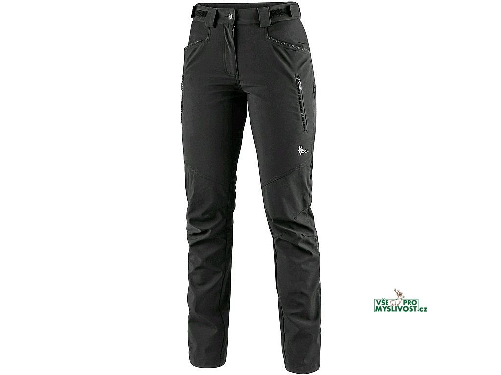 Dámské softshellové kalhoty pro volný čas, flexibilní pas s možností upravení velikosti, poutka na opasek, 4 přední kapsy, zadní kapsa na zip, větrání na stehně a v zadní kolenní části, reflexní doplňky, TPU membrána. Odolnost materiálu proti průniku vody 5000 mm mimo oblast švů, paropropustnost 5000 g/m2/24h.