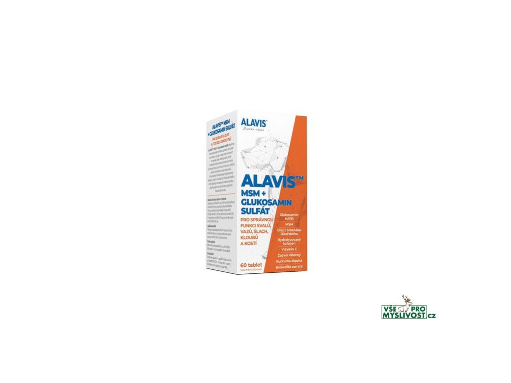 ALAVIS™ MSM + Glukosamin sulfát je osvědčenou kombinací látky MSM a Glukosamin sulfátu pro správnou funkci vazů, šlach, kloubů a kostí. Doporučuje se u štěňat a mladých psů pro správný vývoj pohybového aparátu a dále u psů každého věku při nemocech kloubů, kostí a svalových úponů a pro jejich prevenci. Jedinečná kompozice tohoto přípravku vykazuje výrazný účinek proti bolesti a zánětu. Protizánětlivý účinek látky MSM je výrazně podpořen olejem z brutnáku lékařského, boswelií, kurkumou a zázvorem.