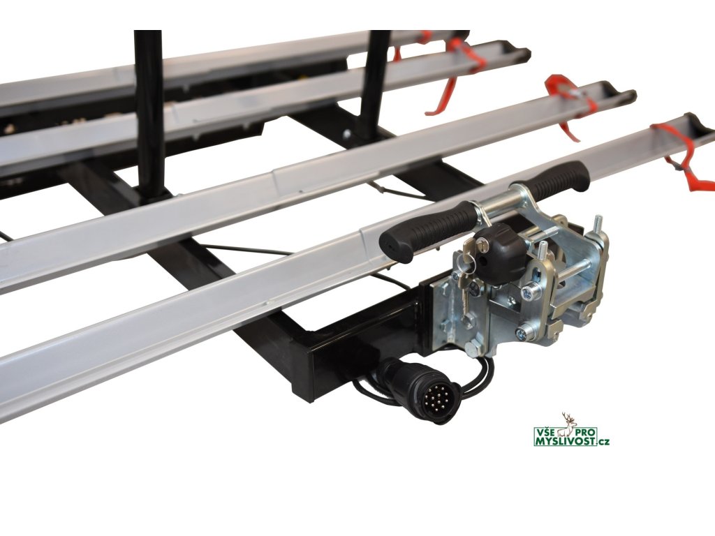 Nosnost jednoho žlábku (lyžiny) je v základním provedení 25kg, za příplatek lze lyžiny zdvojit ( 1ks vyztužení lyžiny = +500,- Kč = individuální konzultace a úprava ceny) a mít tak nosnost jednoho žlábku 40kg (řešení pro elektrokola). Maximální šíře pneumatiky, umístitelné na žlábek nosiče je však 47mm !