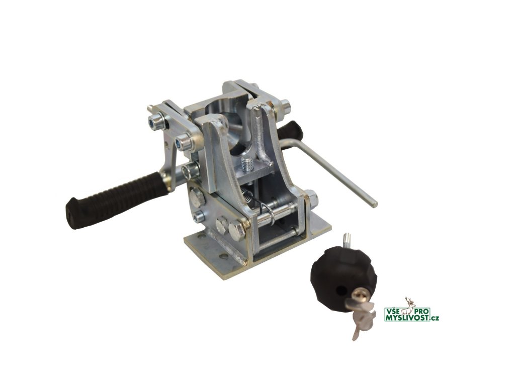 - Platforma je opatřena NOVOU, sklopnou (k zemi) pákovou montáží se zvýšeným přítlakem a pevností upnutí vč. zámku proti odcizení.