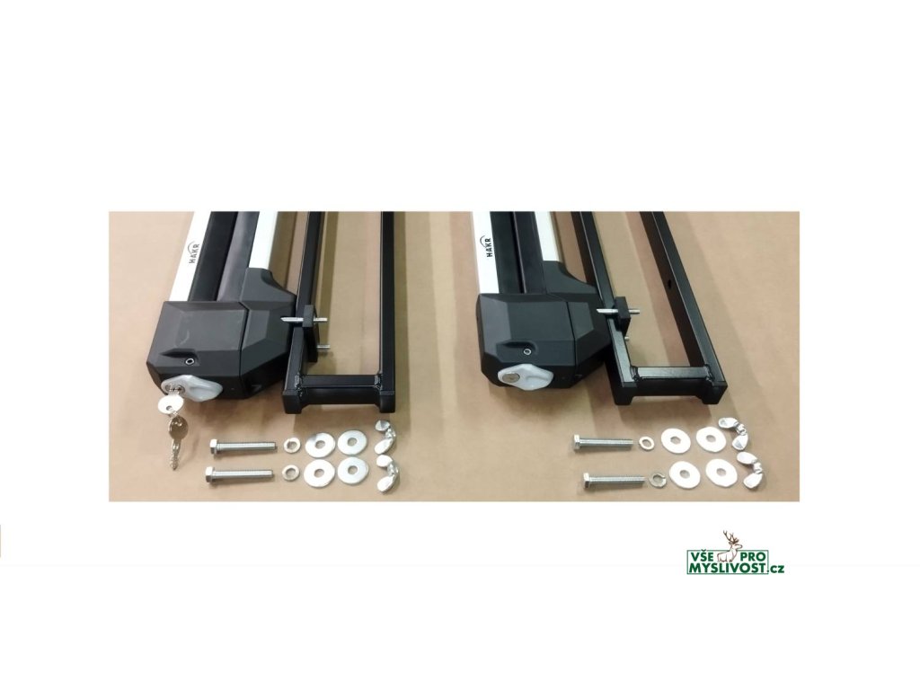 - Pro montáž adaptéru na nosič není třeba žádného nářadí, provádí se šrouby s křídlovými maticemi přes pérovou podložku.