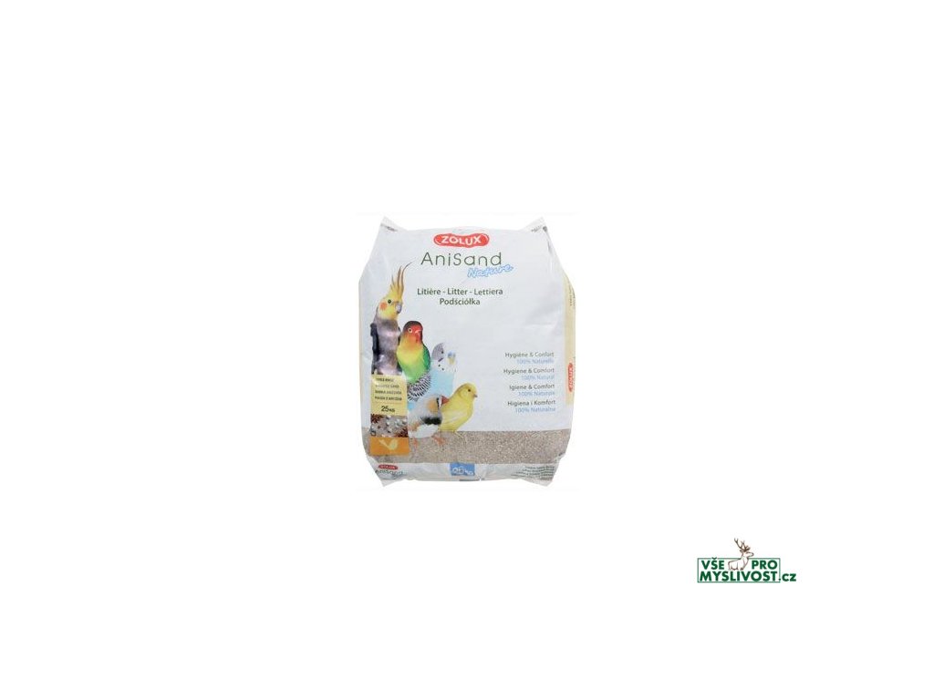 Podestýlka do ptačích klecí a voliér s vůní anýzu je složená z písku a mletých mušlí, která současně napomáhá dobrému trávení. Mleté mušle jsou zdrojem vápníku pro dobrý růst a peří a vůně anýzu skrývá nepříjemné pachy.V dostání ve 2 variantách: