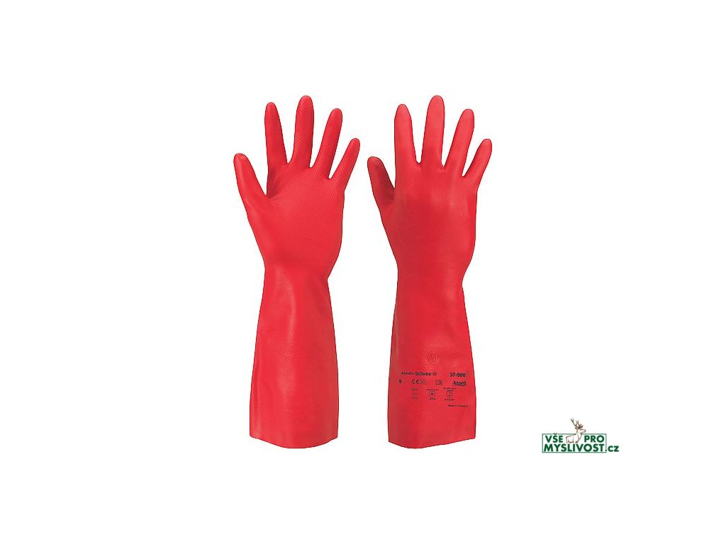 • červené rukavice z 0,425 mm silného nitrilu• s velurovou úpravou uvnitř • s reliéfním povrchem v dlani a na prstech • v celkové délce 38 cm • individuálně testovány na těsnost