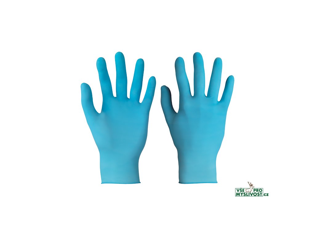 • modré jednorázové nepudrované rukavice ze 100% 0,12 mm silného nitrilu bez příměsí • s rolovaným okrajem • v celkové délce 24 cm • 100 kusů v boxu