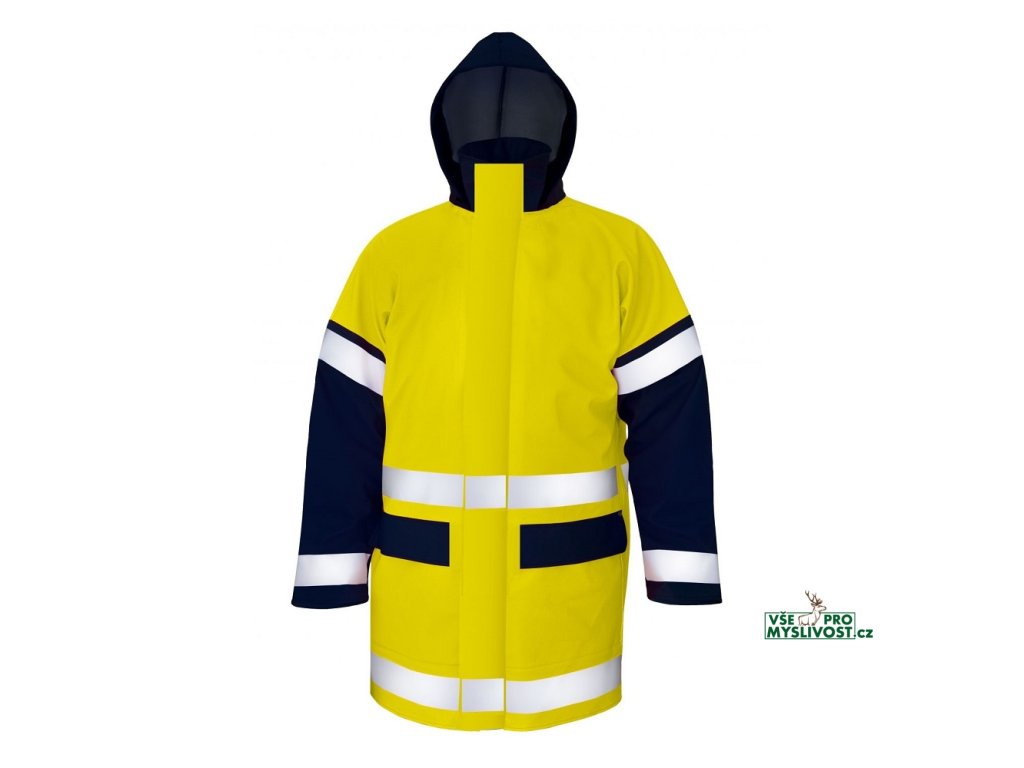 - vyrobeno z technologicky pokročilého materiálu Plavitex Multi, který poskytuje nejen velmi dobrou ochranu proti vodě a větru, ale také ochranu proti antistatickým výbojům, omezuje šíření hoření a výrazně zvyšuje viditelnost díky reflexním prvkům