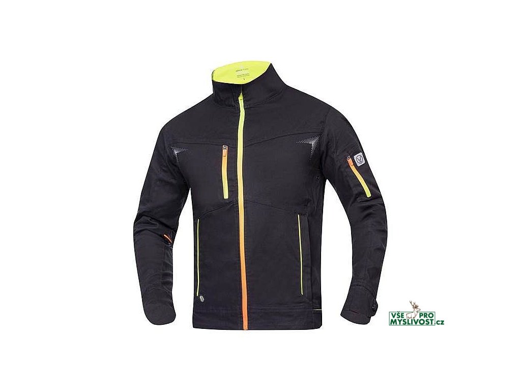 Strečová bavlněná montérková blůza ze speciálního materiálu Amalytton®, který vyniká zvýšenou pevnostía hladkým, jemným povrchem. Sníženou gramáž ocenítedíky příjemnému pocitu při nošení. Na exponovaných partiích je použitý odolný a čtyřsměrně elastický materiál Tabiflex®. Blůza se stojáčkem má vysocefunkční ergonomický 3D střih SLIM FIT, který zvýrazňuje siluetu. Je vybavena průběžným zapínáním na zips krytkou brady, 1 zipovou náprsní kapsou, 1 zipovou kapsou na levém rukávu, 2 zipovými bočními kapsami,má nastavitelnou šířku rukávů a spodního lemu blůzy pomocí druků. Levá horní část blůzy je designována pro umístění firemního loga. Zadní díl blůzy je vybaven funkčním odvětráváním, trojité prošití v namáhaných partiích. Zvýšenou viditelnost uživatele zajišťují dynamické reflexní 3D potisky a hi-vis doplňky.