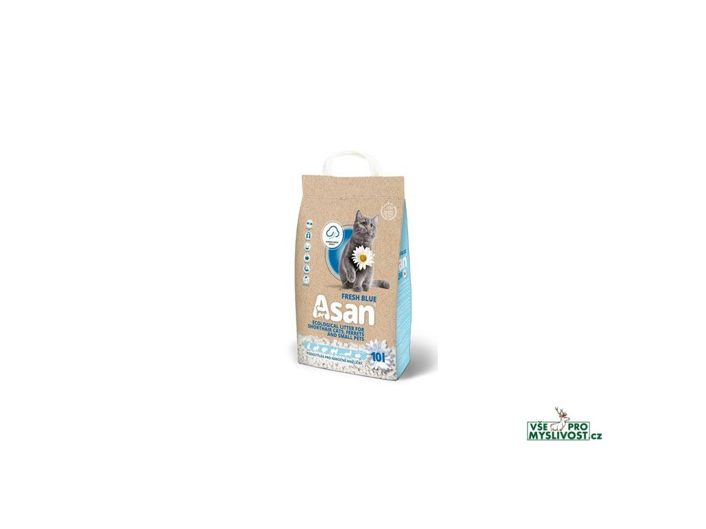 Asan Cat fresh blue - ekologické stelivo pro krátkosrsté kočky, koťata a fretky.- absorbuje vlhkost - povrch steliva zůstává suchý a příjemný pro dotyk tlapek