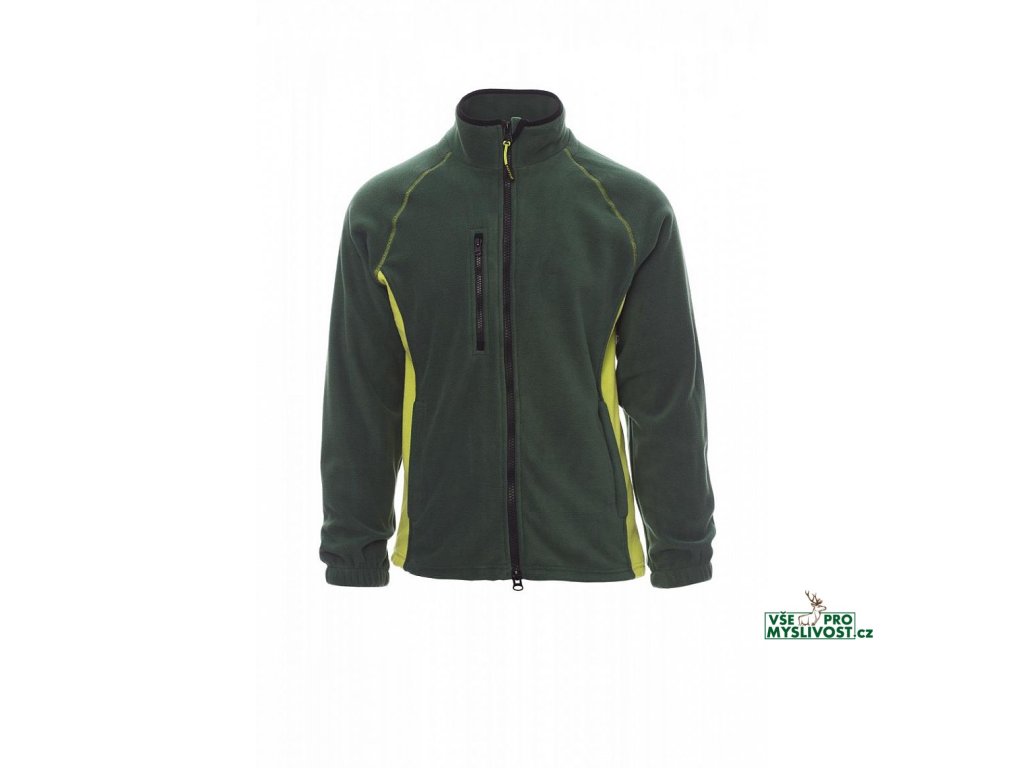 Pánská dvoubarevná flísová bunda s 8mm černým plastovým celozipem, raglánové rukávy, stahovací šňůrka v pase, elastické stahovací manžety na zápěstí, dvě kapsy se skrytým zipem, jedna přední kapsa na zip, kontrastní výztuž límečku, zesílené švy.