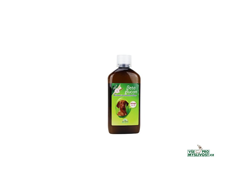Použití: Tekuté doplňkové krmivo vhodné pro všechny druhy zvířat. Sirup obsahující beta glukan působí příznivě na funkci imunitního systému zvířat. Sirup je vhodný pro zvířata jako doplněk stravy v průběhu infekčních onemocnění, v době rekonvalescence, při léčbě ran nebo při zvýšené psychické a fyzické zátěži.Složení: glukózový sirup s fruktózou, voda, mikronizovaný beta -1,3/1,6-D-glukan z Hlívy ústřičné