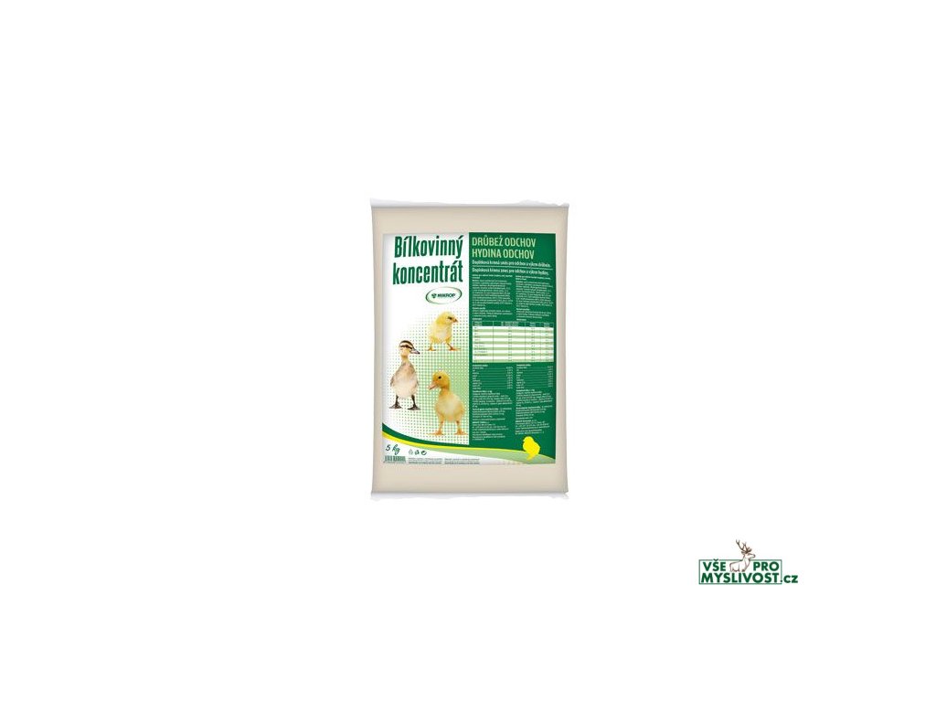 Kvalitní bílkovinný koncentrát pro odchov a výkrm drůbeže v 1. fázi (do 3. týdne věku). Určeno k doplňování krmných dávek. Díky obsahu dusíkatých látek, které brojlerová kuřata potřebují, dosáhneme dostatečných přírůstků v nejdůležitější fázi růstu. Koncentrát neobsahuje antikokcidika.BÍLKOVINNÉ KONCENTRÁTY