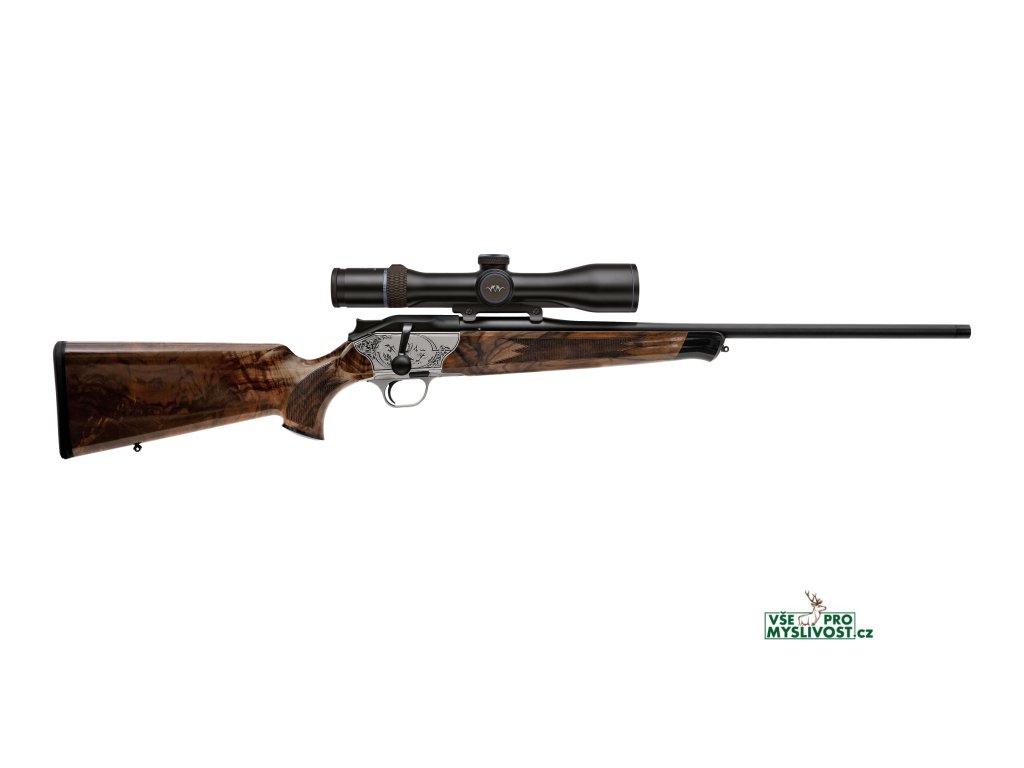 - dřevo kvality 4, jednoduchá bavorská lícnice, staroanglická pryžová botka, ozdobné zakončení krytky pistolové rukojeti a předpažbí tmavým dřevem - boční desky v těchto variantách. Levá – kanec a jelen. Pravá - srnčí, kamzík a kanec - samotná pažba bez závěru .... 106.775,- Kč