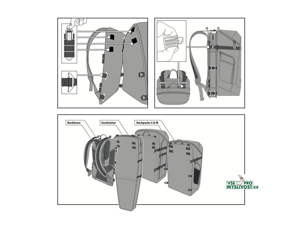 Nosím buď samostatně v ruce nebo na nosné konstrukci Backbone. Uzavírání na dva zipy, vnitřek vypolstrován.
