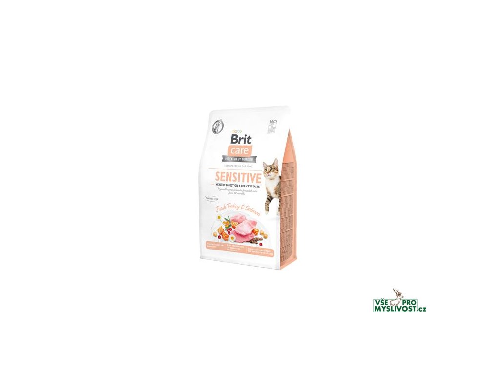 BRIT CARE CAT GRAIN-FREE SENSITIVE HEALTHY DIGESTION & DELICATE TASTE.HYPOALERGENNÍ RECEPTURA "ČERSTVÁ KRŮTA & LOSOS".