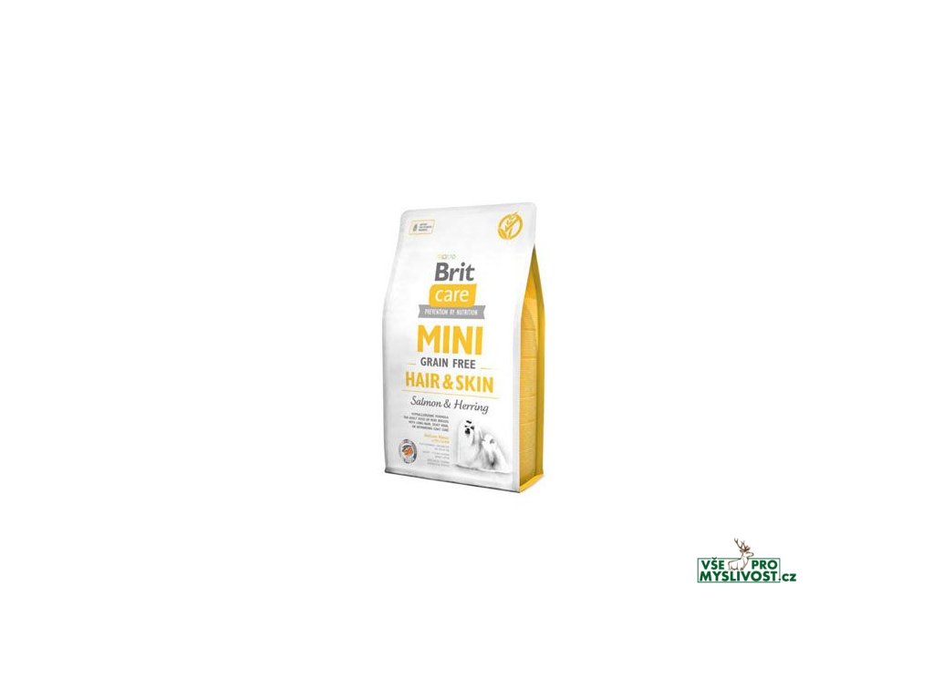 Hypoalergenní granule Brit Care Dog Mini Grain Free Hair & Skin jsou krmivem vytvořeným speciálně pro dospělé psy malých a trpasličích plemen, u kterých je potřeba zvýšené péče o srst.- hypoalergenní