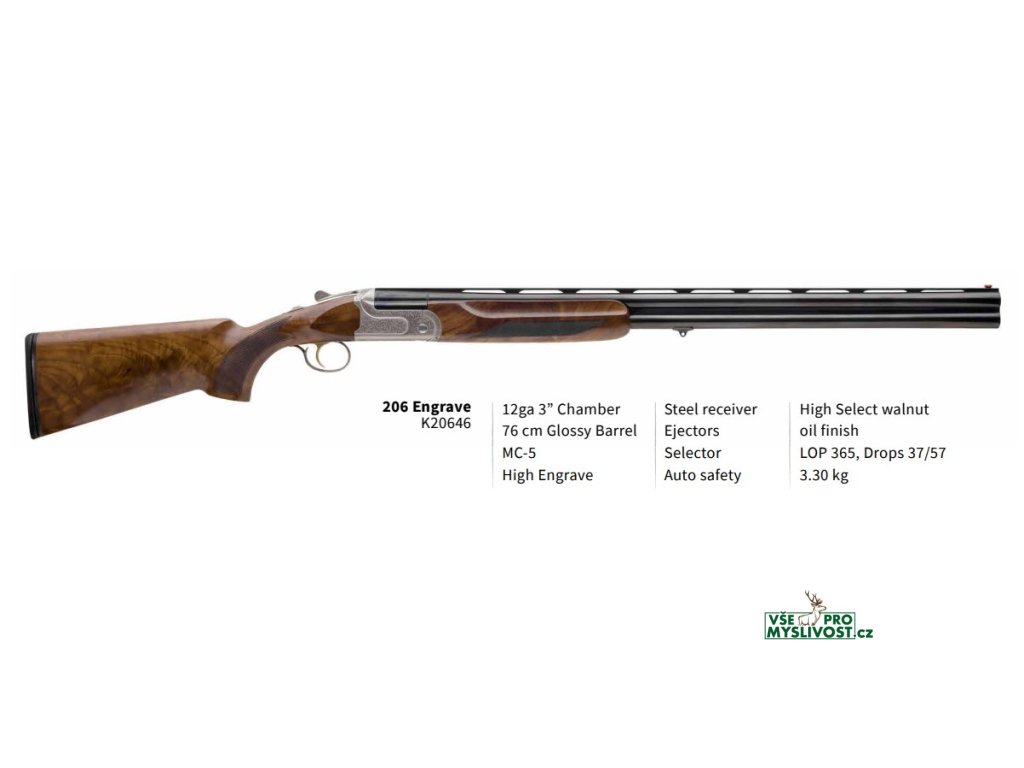 Broková kozlice Akkar, Mod: Churchill 206 Engraved, Ráže: 12x76mm, hl: 71cm, výběr ořech