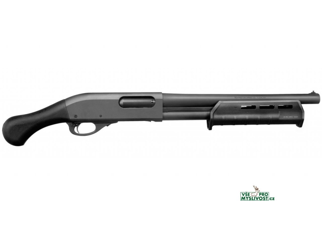 Legendární opakovací (pumpa) brokovnice, která je již po dekády etalonem kvality všech opakovacích brokovnic. Ocelové pouzdro závěru, oboustranné vedení předpažbí, matné provedení, hlaveň bez zahrdlení s délkou pouze 36cm a pistolovou rukojetí!