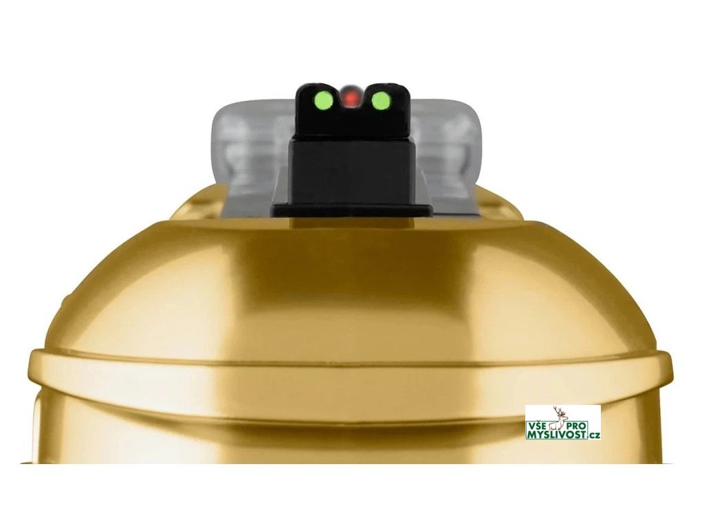 Mířidla se zeleným a červeným optickým vláknem pro zvýšenou přesnost za slabého osvětlení.
