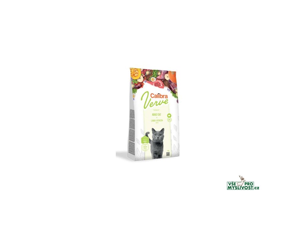 Calibra Cat Verve Adult Lamb & Venison 8+ je kompletní krmivo bez obilovin s vysokým obsahem čerstvého jehněčího masa a zvěřiny. Receptura je určená pro dospělé kočky nad 8 let.Čerstvé jehněčí maso a zvěřina tvoří 30 % celkového obsahu. Proteiny v receptuře jsou ze 78,9 % živočišného původu. Krmivo tak představuje vysoce výživnou porci s atraktivní chutí, která je pro kočku jako masožravce zároveň lehce stravitelná i pro citlivé zažívání. Křupavá a nadýchaná konzistence je neodolatelným lákadlem.