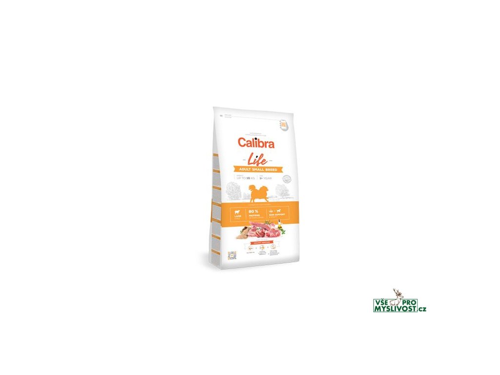 Calibra Dog Life Adult Small Breed Lamb je kompletní krmivo pro dospělé psy malých plemen (do 10 kg) s jehněčím masem. Tato receptura má vysoký obsah kvalitních jehněčích bílkovin a nízký obsah obilovin (pouze rýže) a je hypoalergenní. Bílkoviny živočišného původu tvoří 80 % jejich celkového obsahu. Receptura je sestavena jako monoproteinová - pouze jeden zdroj živočišných bílkovin. Složení je obohaceno o přídavek lososového oleje, který zároveň pomáhá v péči o zdravou kůži a srst psa a má i protizánětlivé účinky, o prebiotika s probiotiky, které podpoří dobré zažívání a spolu s mixem vitaminů a minerálů navíc posílí pejskovu imunitu, jeho celkové zdraví a vitalitu. Granule jsou menší velikosti.Funkce hlavních aditiv