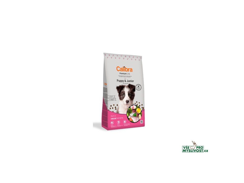 Calibra Dog Premium Puppy & Junior je kuřecí receptura pro štěňata a mladé psy, která je vhodná i pro březí a kojící feny.Jedná se o vysoce kvalitní kompletní suché krmivo pro všechny psí mazlíčky. Nabízí vyvážený poměr všech potřebných živin, vitamínů, minerálů či stopových prvků tak, aby plně zabezpečily všechny výživové nároky zdravého pejska.