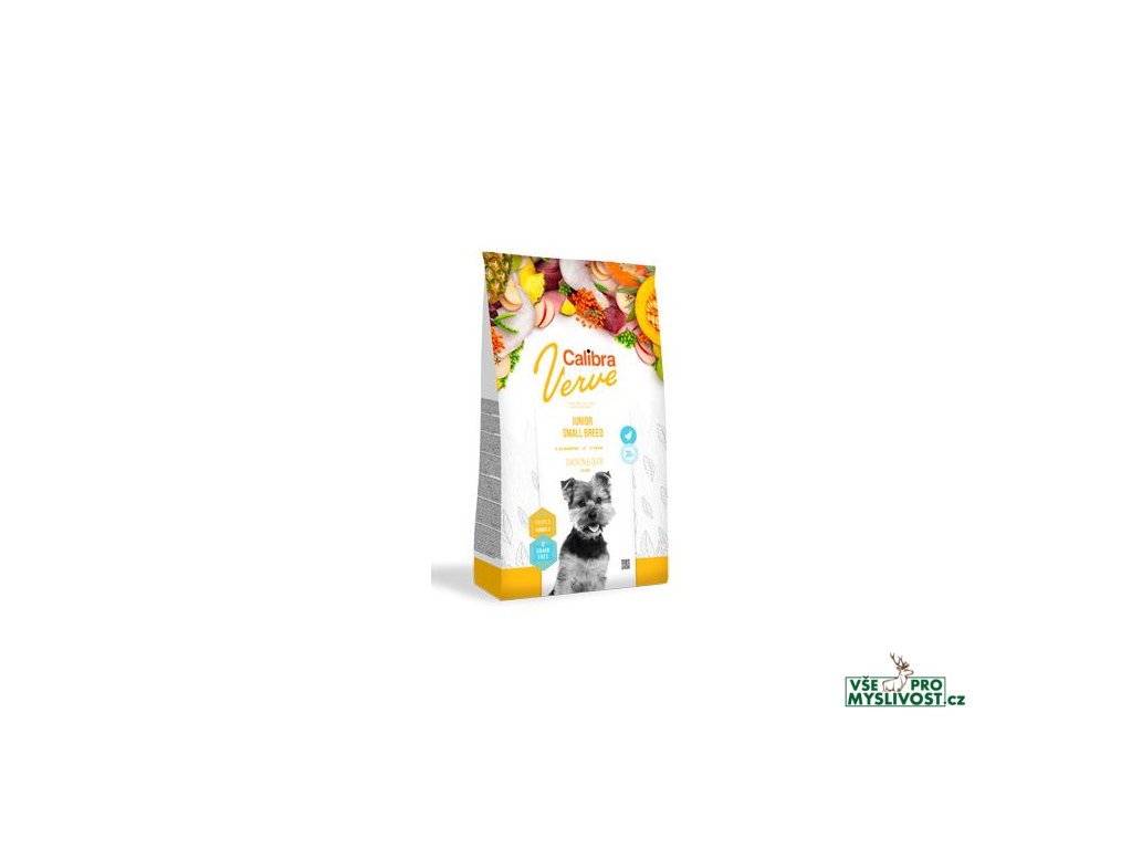 Calibra Dog Verve Junior Small Breed (Chicken & Duck) je kompletní suché krmivo s čerstvým masem a bez obilovin. Receptura je určená pro mladé psy ve věku 3-12 měsíců malých plemen s hmotností 1-10 kg.Díky vysokému obsahu čerstvého kuřecího masa 30 % a kvalitnímu kachnímu proteinu se psovi dostane přirozená strava, která je v souladu s jeho fyziologickými potřebami, tolik potřebná pro jeho správný růst a vývoj.