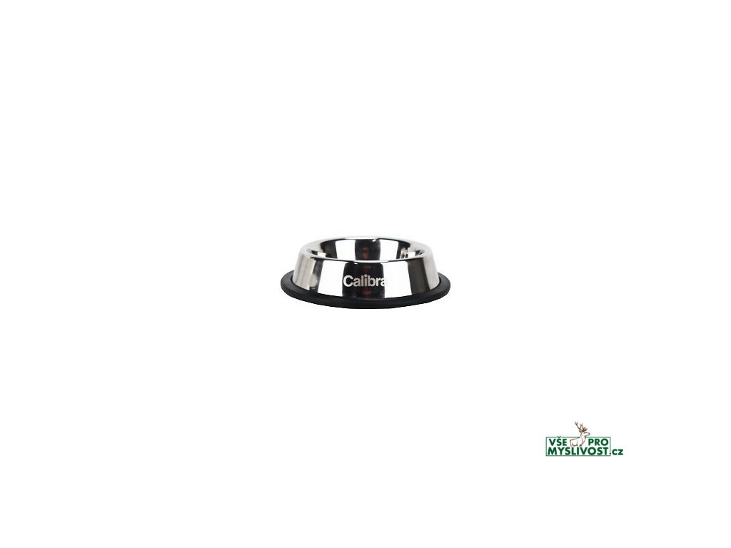 Nerezová miska na vodu / krmivo pro menší psy nebo kočky, černá protiskluzová guma na okraji.