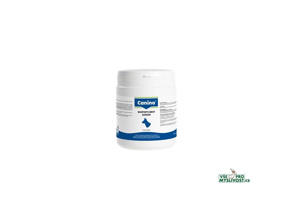 Barfer´s Best Junior od Caniny je snadno stravitelný, chutný a u barfovaných psů by neměl chybět v žádné potravě po celou dobu růstu. Díky prášku z tělíček mlže (Perna canaliculus, který je speciálně pro tyto účely chován na Novém Zélandu) je přípravek obohacen o směs glykosaminoglykanů (obsahující chondroitinsulfát, glukosaminsulfát, keratinsulfát aj.). Posiluje tedy přirozenou funkci kloubů, chrupavek, šlach a vazů. Barfer´s Best Junior od Caniny neobsahuje žádné syntetické vitamíny. Všechny obsažené vitamíny, včetně vitamínu D3, který je nezbytný pro zabudování vápníku do kostí, jsou přírodního původu (hnědé mořské řasy a pivovarské kvasnice).Výživa rostoucího barfovaného psa bude kompletní s Canina Barfer´s Oil, který obsahuje esenciální polynenasycené mastné kyseliny.