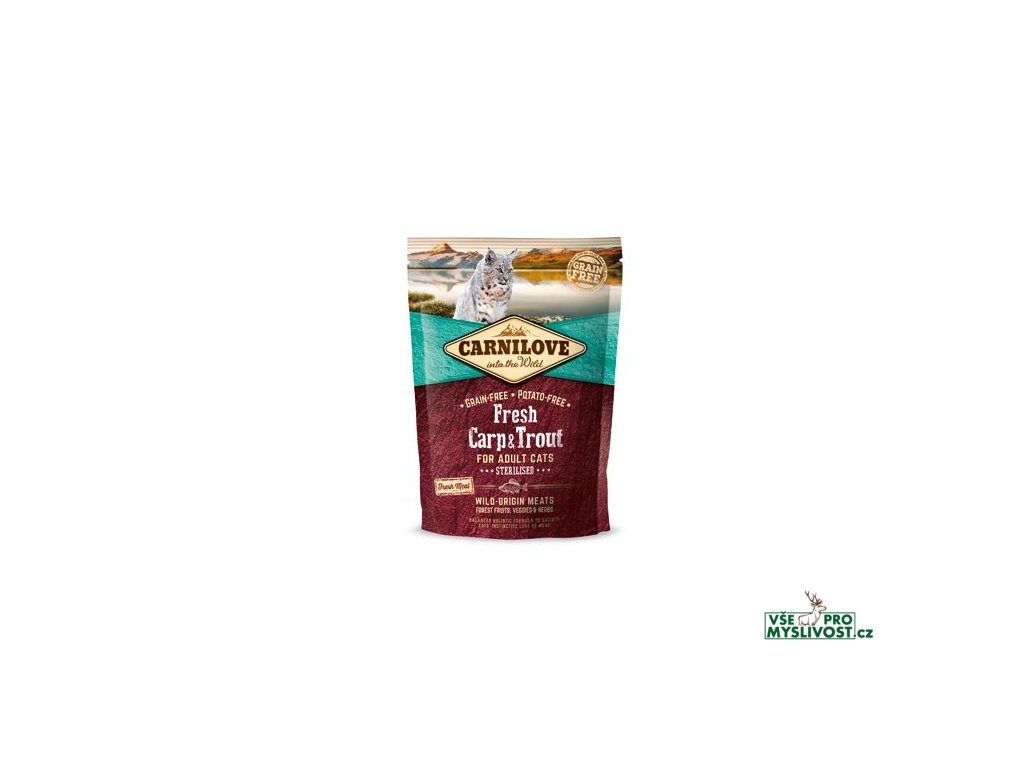 Carnilove Kapr & Pstruh je superprémiové, holistické kvalitní krmivo bez obilovin a brambor s čerstvým masem pro dospělé kastrované kočky. Krmivo bylo navrženo s respektem k přirozené skladbě potravy koček a poskytuje vaší kočičí společnici vyváženou stravu bohatou na čerstvé maso v kombinaci s různými druhy zeleniny, lesního ovoce a bylin.- Kontrolovaný obsah minerálů podporuje správnou funkci ledvin a močových cest