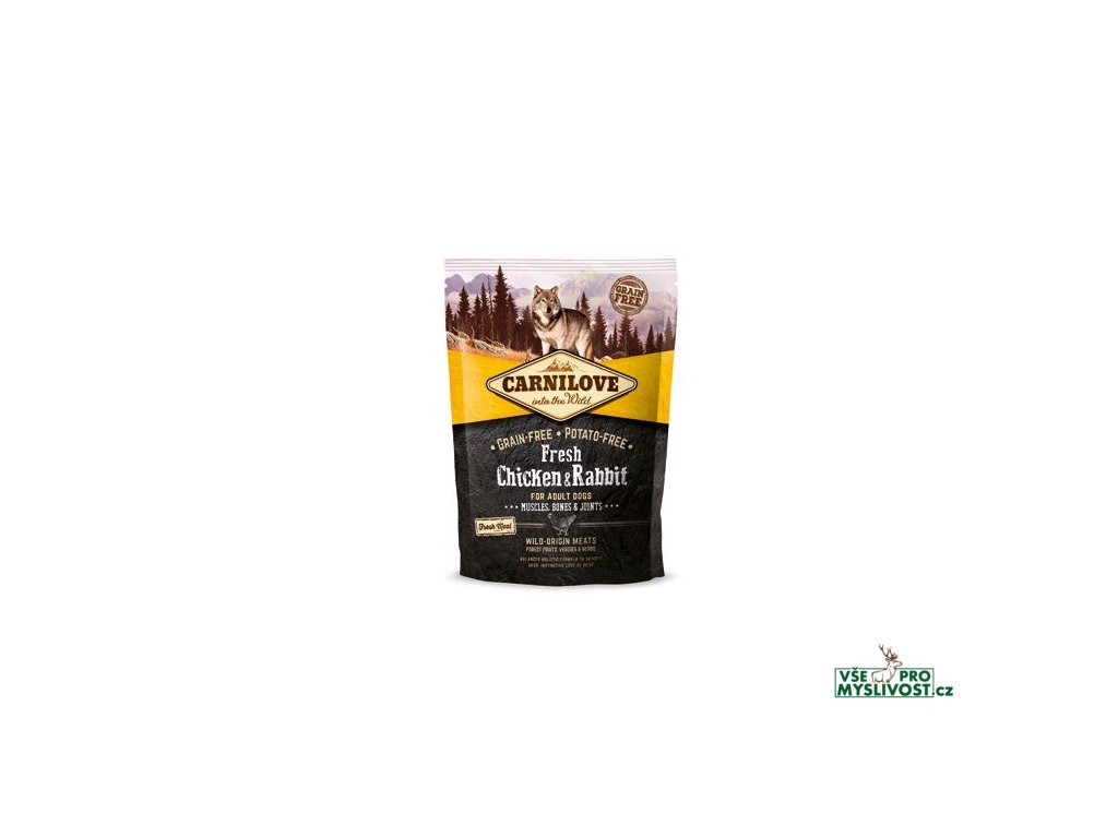 Carnilove Fresh Kuře & Králík superprémiové, holistické krmivo bez obilovin a brambor s čerstvým masem pro dospělé psy. Krmivo bylo navrženo s respektem k původní přirozenosti psů tak, aby jim poskytl vyváženou stravu bohatou na čerstvé maso v kombinaci s různými druhy zeleniny, ovoce a bylinZlepšuje trávení a podporuje správný růst svalů a chrupavek