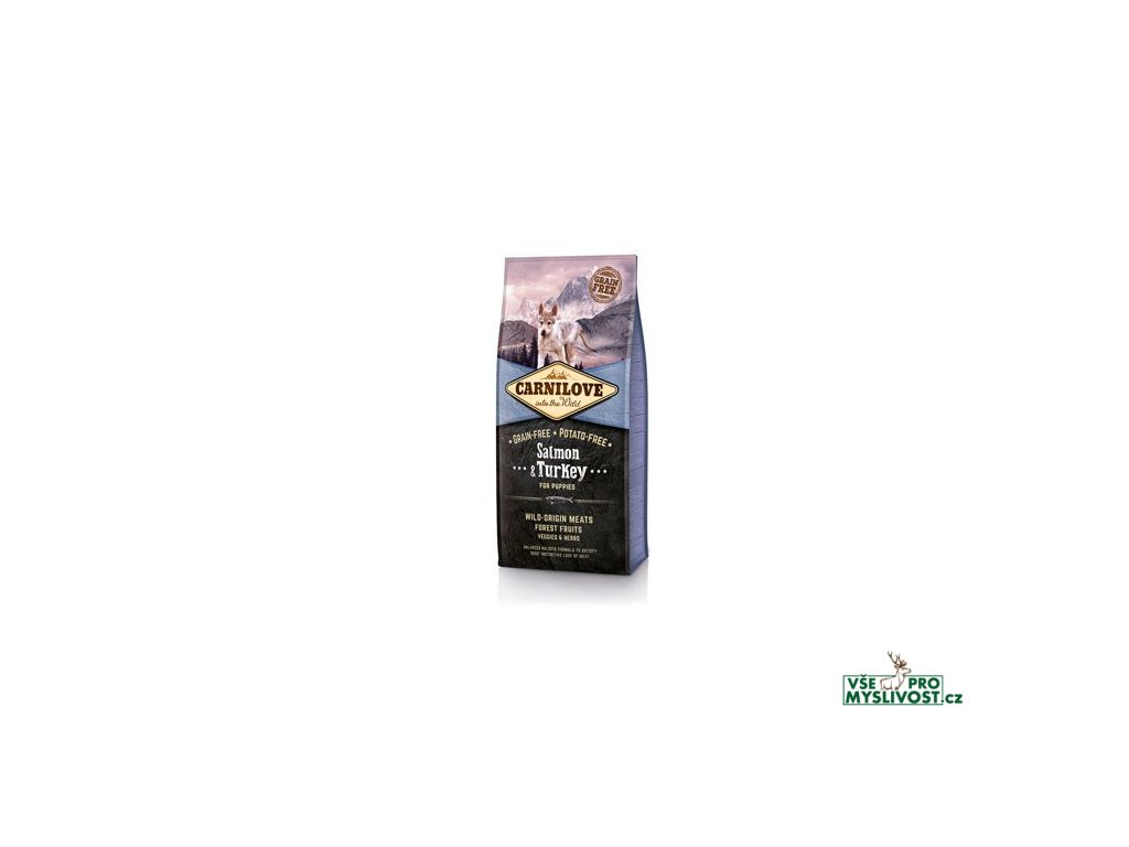 HOLISTICKÉ VYSOCE KVALITNÍ KRMIVO Z LOSOSA A KROCANA BEZ OBILOVIN A BEZ BRAMBOR. VHODNÉ PRO ŠTĚŇATA VŠECH PLEMEN OD 4.TÝDNE DO 12.MĚSÍCE. KRMIVO JE VHODNÉ I PRO BŘEZÍ A KOJÍCÍ FENY.Losos je zdrojem vysoce stravitelných proteinů. Je bohatým zdrojem omega-3 nenasycených mastných kyselin, které pozitivně ovlivňují mentální vývoj, kardiovaskulární soustavu a metabolismus (snižují obsah krevního cukru). Losos má pozitivní vliv na kvalitu a vzhled srsti a kůže. Krocan je bohatým zdrojem stravitelných proteinů s vysokým obsahem stopových prvků, zejména zinku. Dále obsahuje vitamíny B 3 a B 6, které ovlivňují činnost mozku, svalový tonus a jsou nezbytné pro zdravý růst.