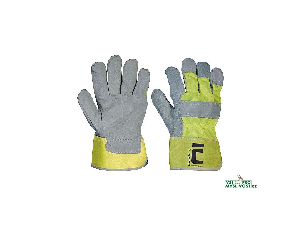 • rukavice z jednobarevné hovězí štípenky v dlani • s podšívkou • polyesterový úplet v reflexní barvě na hřbetu a manžetě