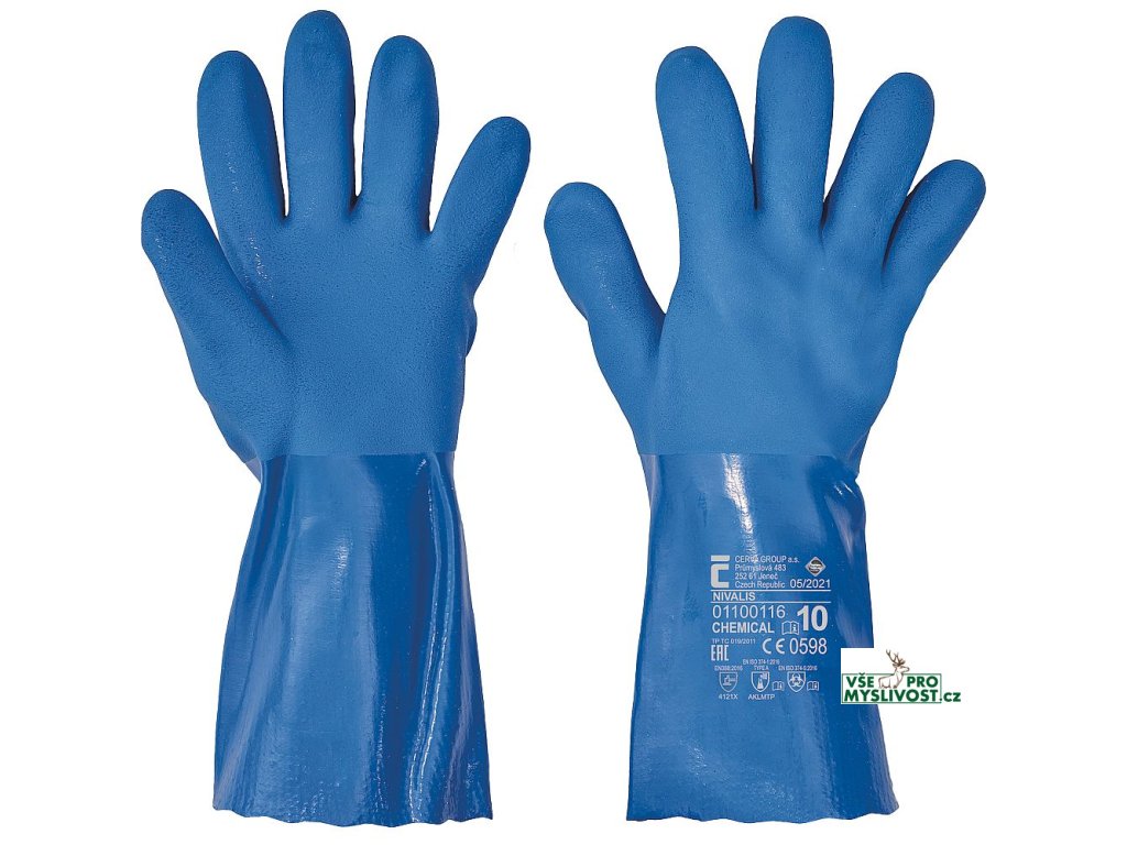 • rukavice z PVC odolné chemikáliím s bavlněnou podšívkou a speciální povrchovou úpravou • vynikající ergonomie a úchopové vlastnosti • lehce nasaditelné