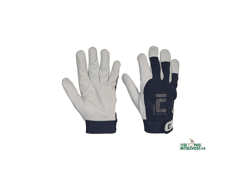 • šité rukavice z jemné kozinky v dlani a bavlněného úpletu na hřbetu ruky • konce prstů překryté kůží • pružná manžeta na suchý zip