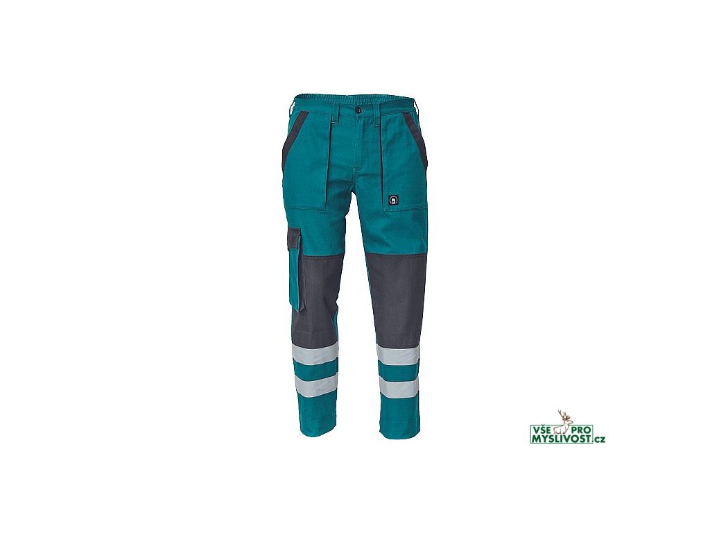 • pánské pracovní kalhoty s elastickým pasem • 2 přední kapsy • 1 stehenní kapsa • 2 zadní kapsy • reflexní pruhy na spodní části nohavic • zesílená oblast kolen • nastavitelná délka nohavic