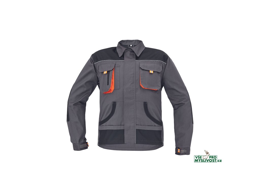 • pánská bavlněná pracovní bunda • zapínaní na zip kryté légou • 2 náprsní kapsy s klopou na suchý zip • 2 multifunkční postranní kapsy v pase • polyester Oxford zesílení v loketních částech a ramenou