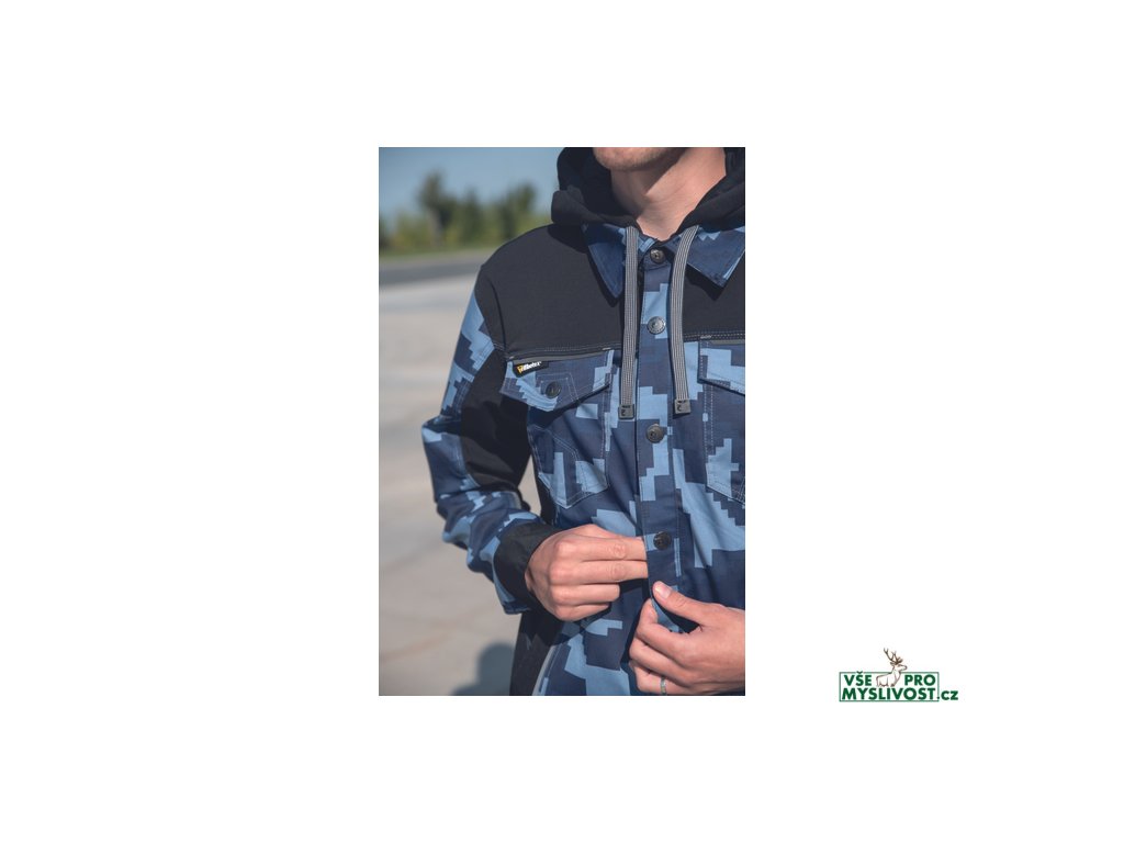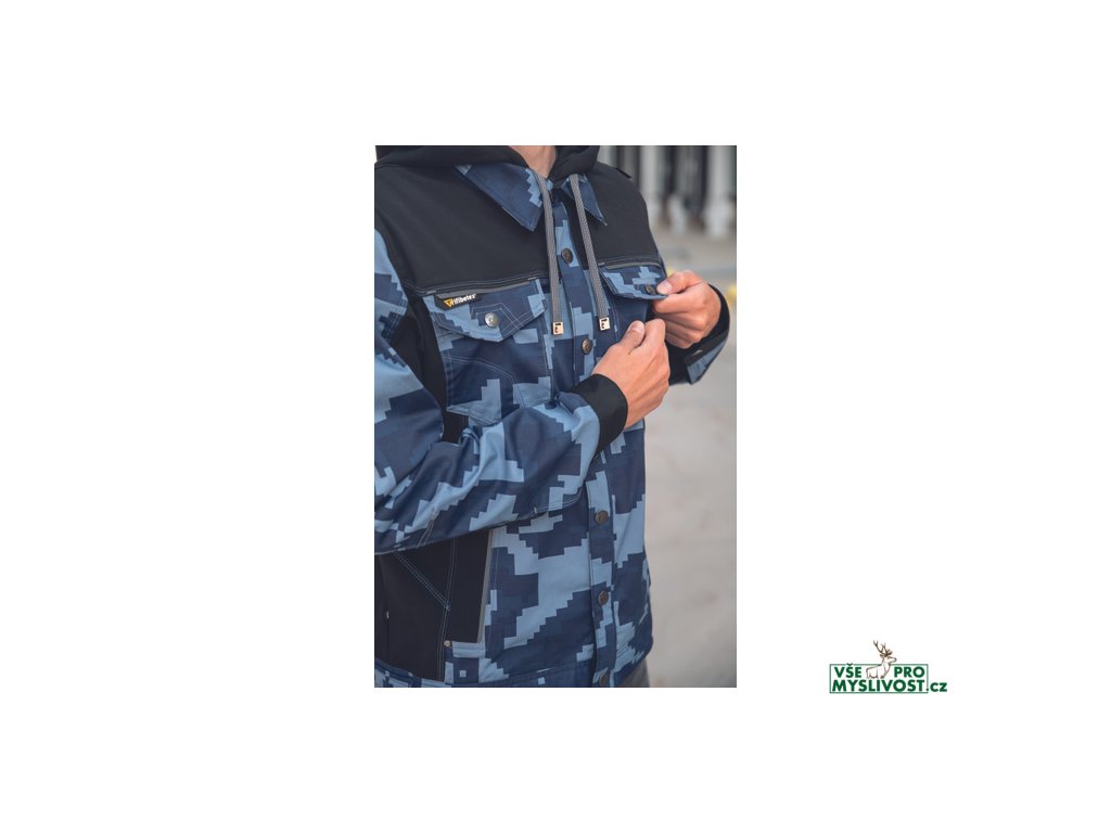 • pánská pracovní bunda v kamuflážovém potisku s odepínací kapucí a zapínáním na druky • elastický inovativní materiál TRIFIBETEX® v kombinaci se 4way strečovým materiálem TRIFIBETEXPRO® • trojité prošívání • CORDURA® zesílení v oblasti ramen • 2 boční kapsy • 2 náprsní kapsy na druky • nastavitelná šíře rukávů se zapínáním na druky • reflexní prvky v barevném odstínu