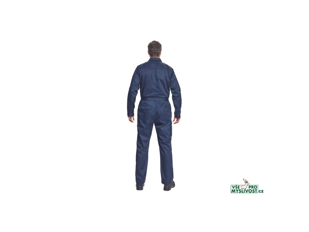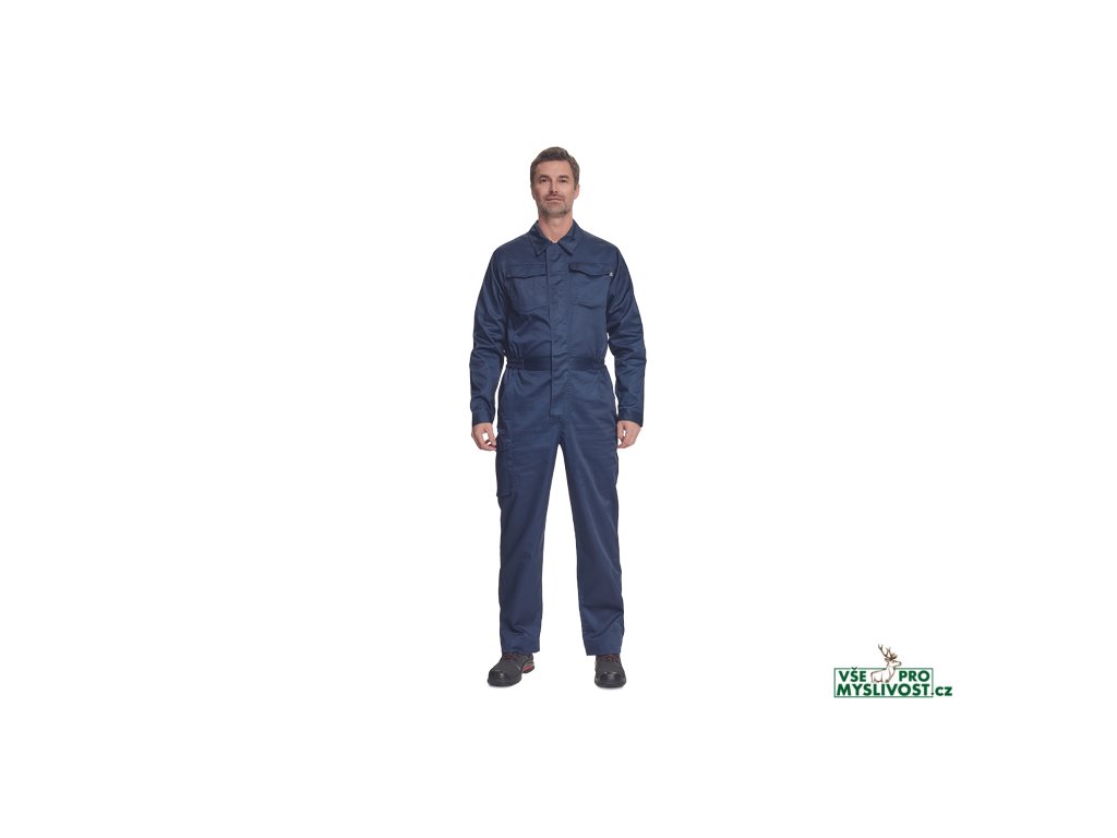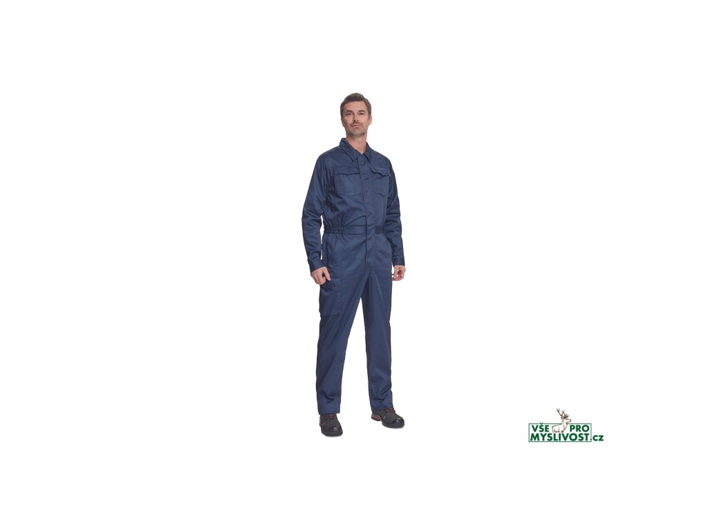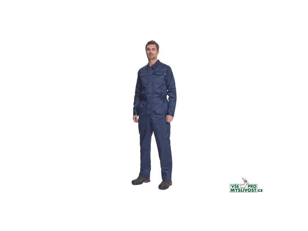 • pánský lehký pracovní overal s elastickým pasem • zapínání na zip kryté légou na suchý zip • 2 postranní kapsy, 1 kapsička na mince • 1 multifunkční stehenní kapsa, 2 náprsní kapsy s klopou • 2 zadní kapsy • nastavitelná délka nohavic