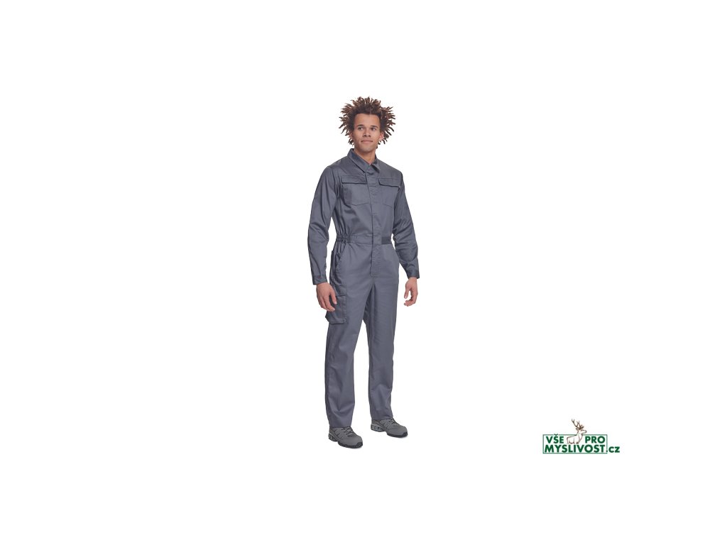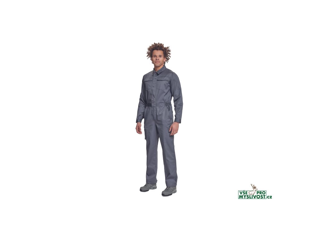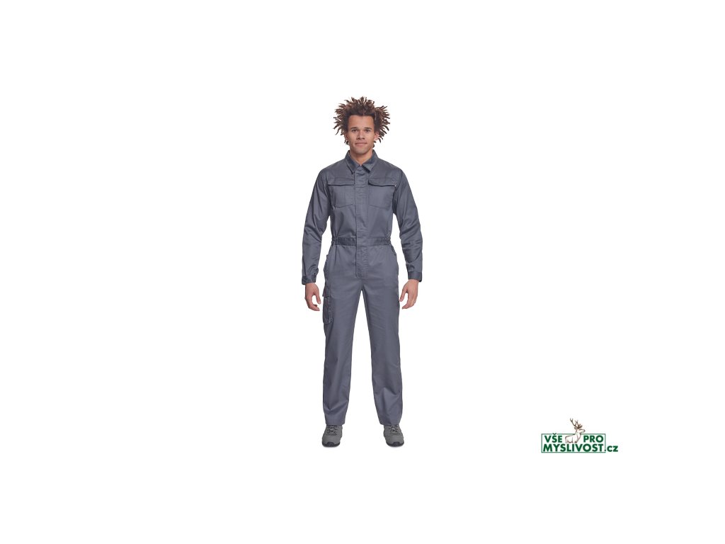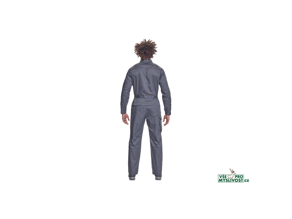 • pánský lehký pracovní overal s elastickým pasem • zapínání na zip kryté légou na suchý zip • 2 postranní kapsy, 1 kapsička na mince • 1 multifunkční stehenní kapsa, 2 náprsní kapsy s klopou • 2 zadní kapsy • nastavitelná délka nohavic