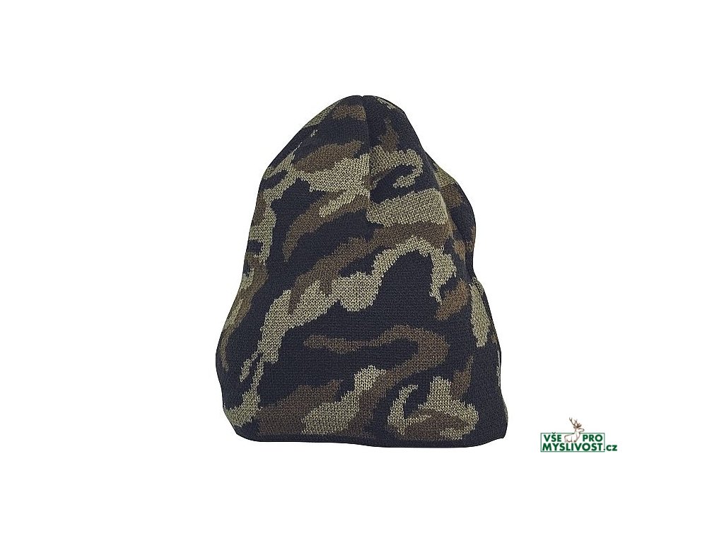 • pletená unisexová čepice s fleecovou podšivkou v kamufláž vzoru