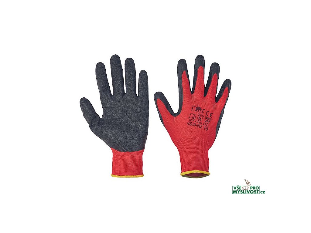• pletené bezešvé polyesterové rukavice • máčené v černém latexu na dlani a na prstech • pružná manžeta