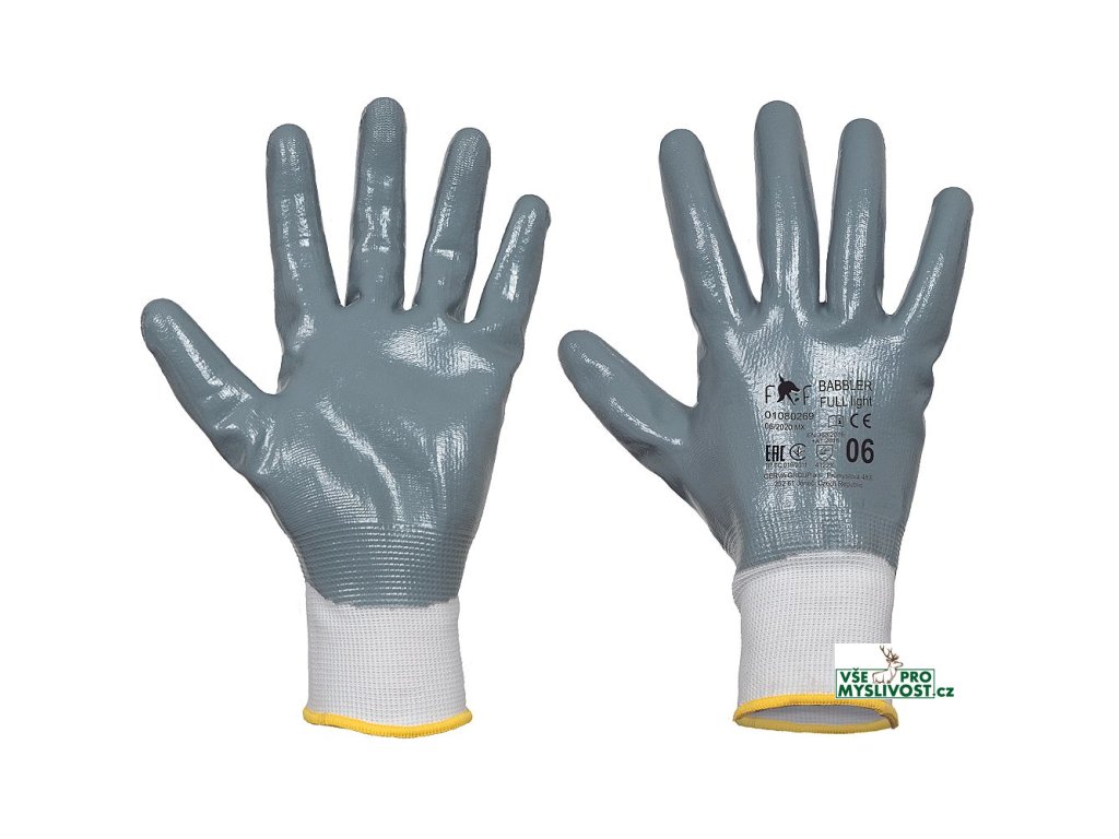 • pletené bezešvé polyesterové rukavice plně máčené v nitrilu