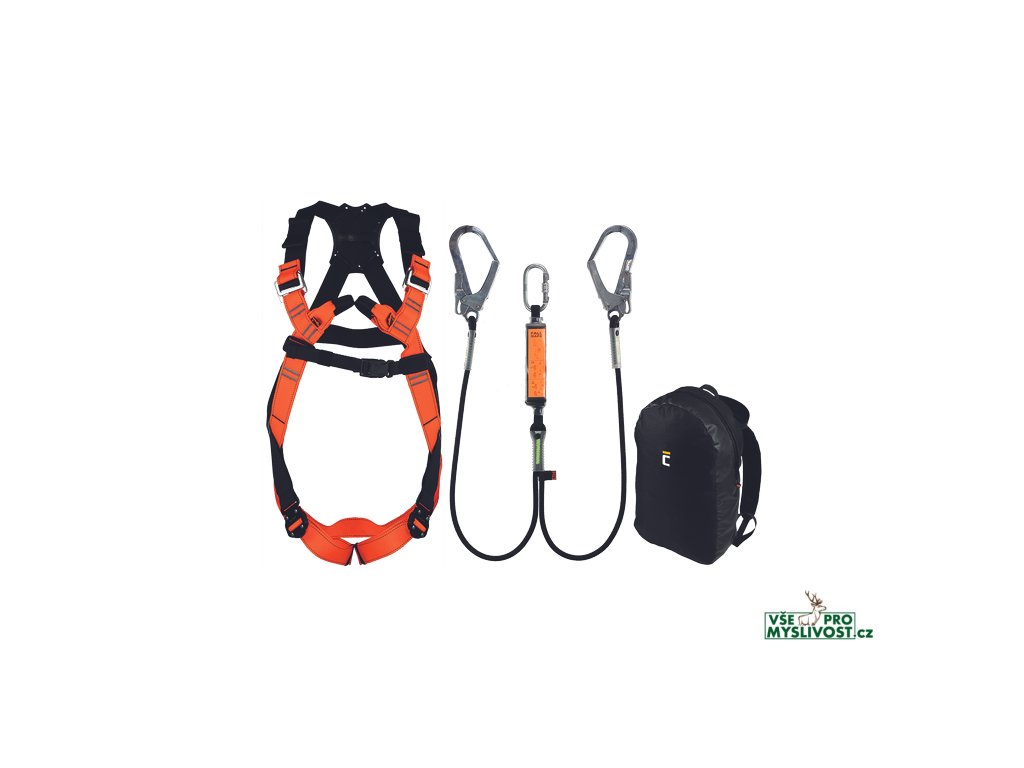 Cerva Scaffolders sada obsahuje zachycovací postroj, tlumič pádu se dvěma lany a karabinami s otevřením 50 mm, batoh 20 litrů; oblast použití: pohyb po ocelotových konstrukcích a lešeních, výstup a sestup na ocelové sloupy a konstrukce, mobilní plošiny; splňuje normy: EN 361, EN 355, EN 362