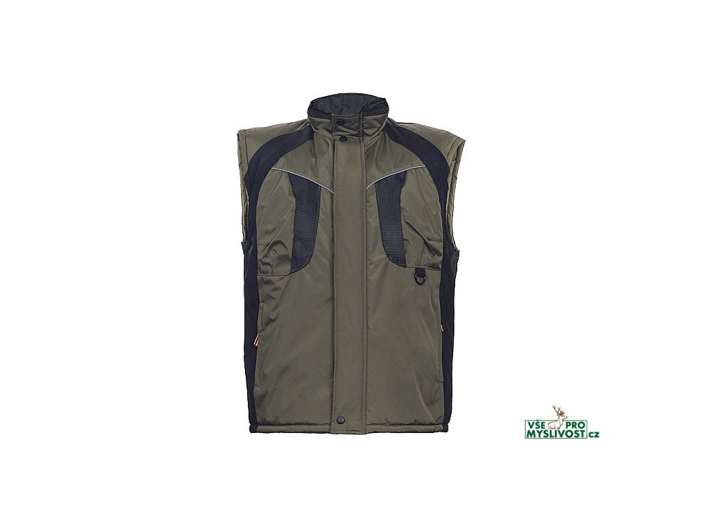 • zateplená nepromokavá pánská zimní vesta se stojáčkem • mechanicky odolná úprava RipStop • zapínání na zip kryté légou • spodní lem ke stažení na šňůrku • 2 postranní kapsy, 2 náprsní kapsy • reflexní doplňky