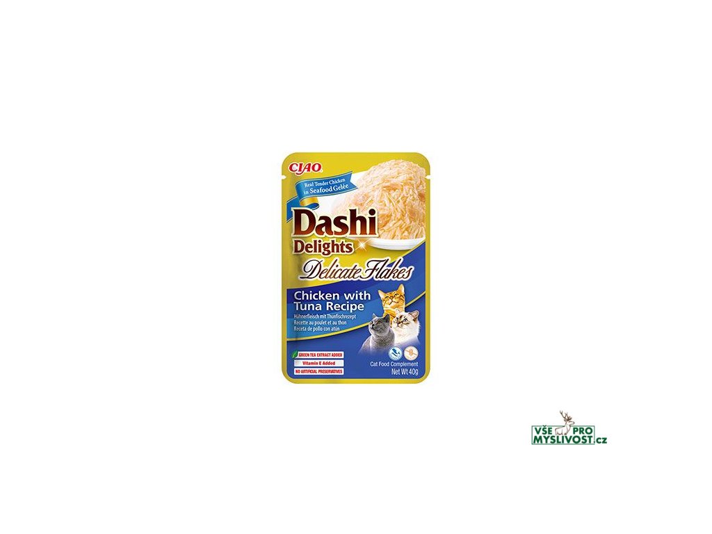 Co je Dashi? Dashi je tradiční japonský rybí vývar z vloček bonito, který je známý svou bohatou a výraznou chutí. Dashi má nízký obsah kalorií a tuku, takže je zdravým doplňkem stravy vaší kočky. Dashi kapsičky obsahují jemné kuřecí vločky plné bílkovin smíchané s japonským vývarem Dashi a s příchutí bonito. Dashi kapsičky jsou skvělé doplňkové krmivo s vysokým obsahem vody - zpestřete stravu vašim kočičích kamarádům kapsičkou s až 86% vlhkostí. Jednoduše lahodné - čerstvé ingredience s přidaným vitamínem E pro podporu jejich imunitního systému a extraktem ze zeleného čaje jako přírodního antioxidantu. Potěšte svou kočku těmito kapsičkami každý den. Zpestřete život svých koček - k dispozici je šest receptur, které si kočky všech plemen a stádií (od kotěte po seniora) vychutnají jako doplněk k běžnému krmivu.