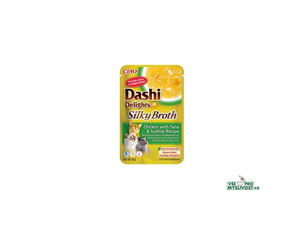 Co je Dashi? Dashi je tradiční japonský rybí vývar z vloček bonito, který je známý svou bohatou a výraznou chutí. Dashi má nízký obsah kalorií a tuku, takže je zdravým doplňkem stravy vaší kočky. Dashi kapsičky obsahují lahodný vývar, který je vyrobený z bonito vloček ze sušeného tuňáka uloveného ve volné přírodě a je smíchaný s kuřecími kousky pro zvýšení obsahu bílkovin. Dashi kapsičky jsou skvělé doplňkové krmivo s vysokým obsahem vody - zpestřete stravu vašim kočičích kamarádům kapsičkou s až 93 % vlhkostí. Jednoduše lahodné - čerstvé ingredience s přidaným vitamínem E pro podporu jejich imunitního systému a extraktem ze zeleného čaje jako přírodního antioxidantu. Potěšte svou kočku těmito kapsičkami každý den. Zpestřete život svých koček - k dispozici je šest receptur, které si kočky všech plemen a stádií (od kotěte po seniora) vychutnají jako doplněk k běžnému krmivu.