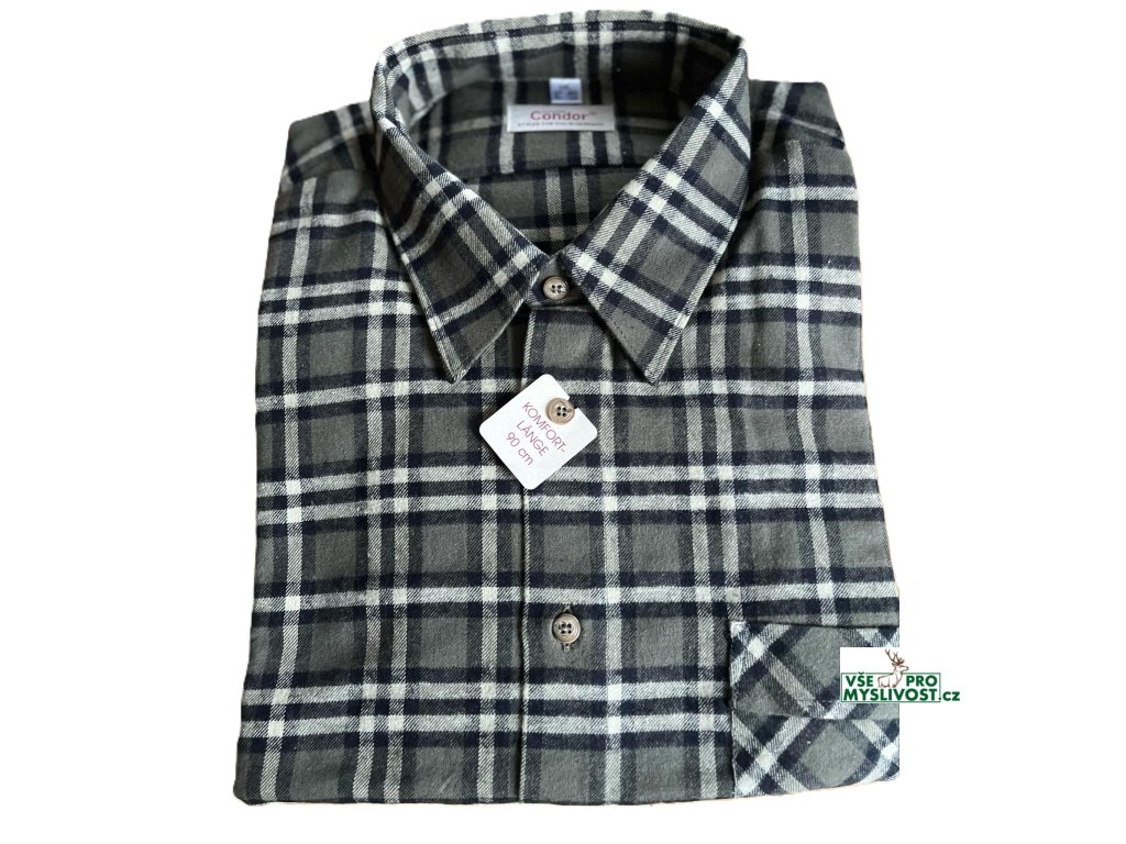 Popis: flanelová pánská košile s dlouhým rukávem a kostkovaným vzorem, odpuzuje vlhkost a reguluje teplotu těla, komfortní délka 90 cm, manžety s knoflíkem, otevřená náprsní kapsa