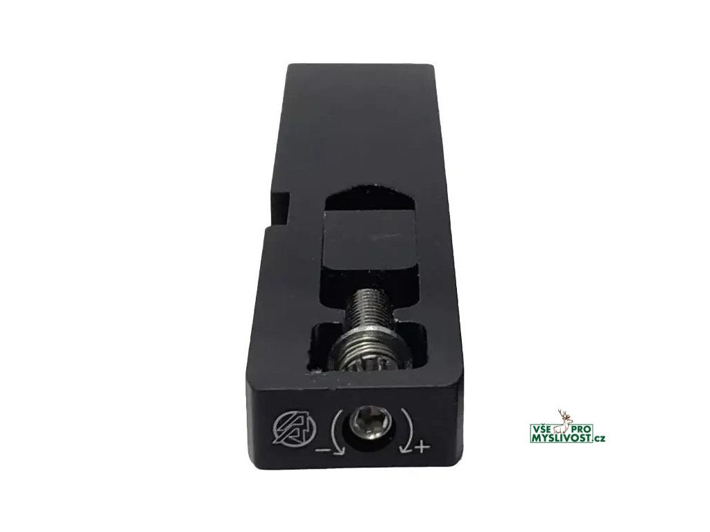 Pro nastavení prachové náplně je potřeba použít imbusový klíč 2,5 mm (není součástí dodávky). Nastavovací šroub má 12 kliknutí na otáčku, pro snazší nastavení přesné prachové navážky.